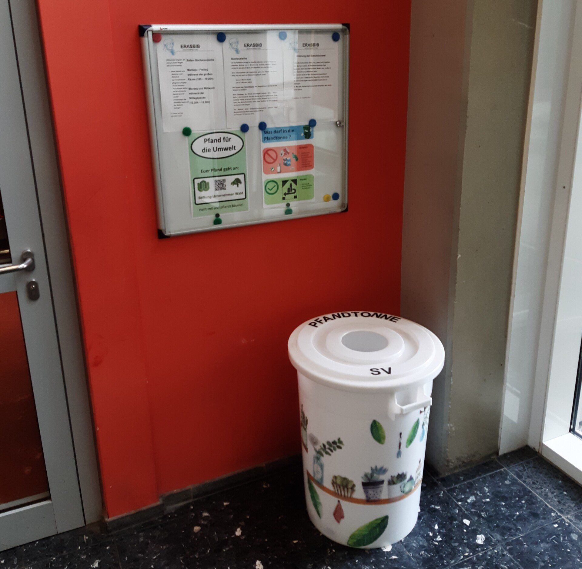 Zu einer nachhaltigeren Lebensweise gehört auch das richtige Recyclen von Pfandflaschen. Unsere SV hat sich dazu etwas ausgedacht, was gleichzeitig auch noch einen guten Zweck unterstützt: Im Schulgebäude sind drei Pfandtonnen aufgebaut, in welche ihr Pfandflaschen und -dosen werfen könnt.