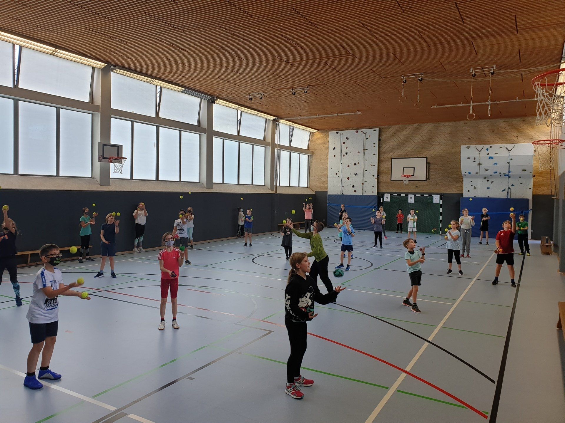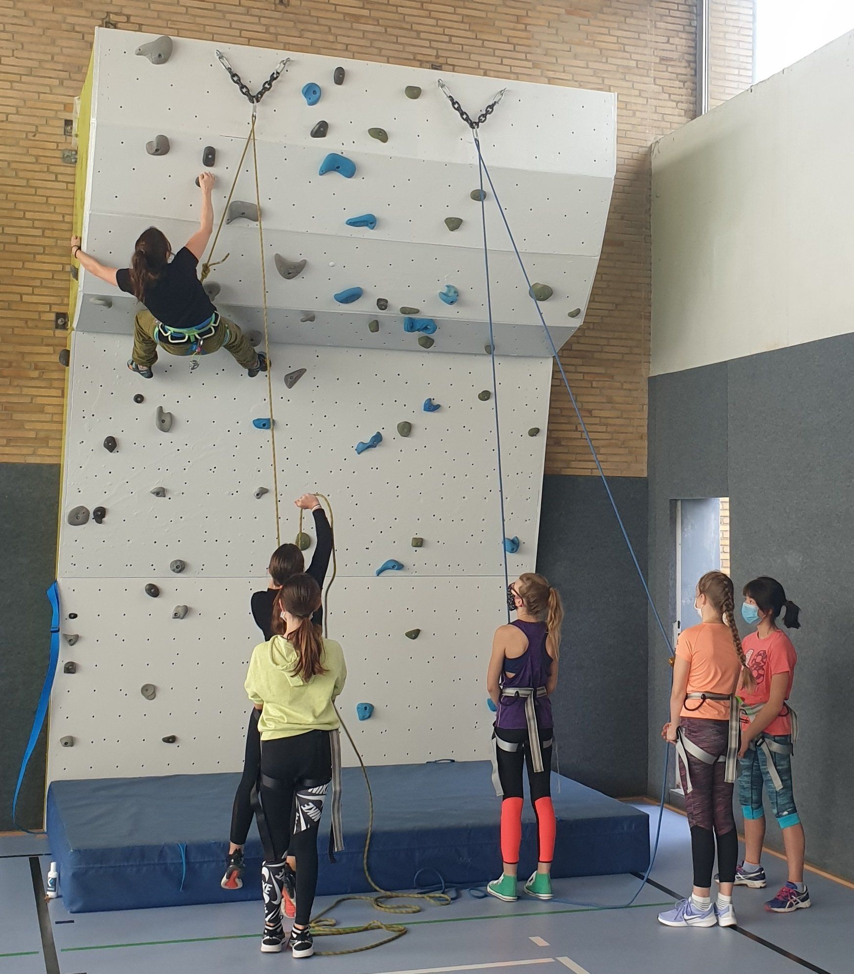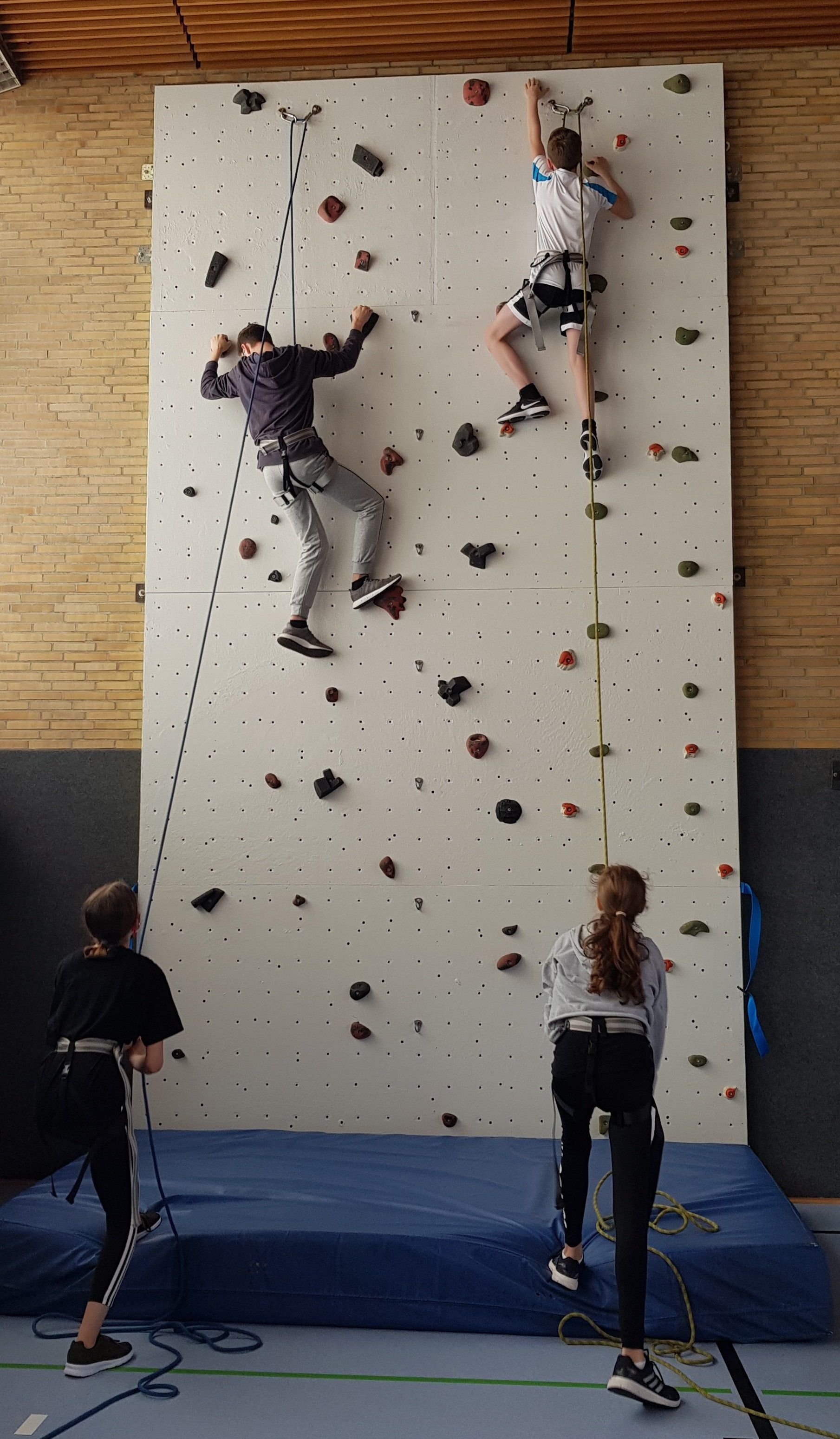 Ein besonderes Highlight im Sportunterricht und im AG-Bereich bieten drei frisch (in 2020) von der Kletterkirche Mönchengladbach renovierte und gepflegte Kletterwände. Klettern ist eine Abenteuer- und Erlebnissportart und macht richtig viel Spaß. Zur Lösung eines „Kletterproblems“ braucht man Mut, Vertrauen, Bewegungskreativität und manchmal auch etwas Kraft, Anstrengung und Durchhaltevermögen.